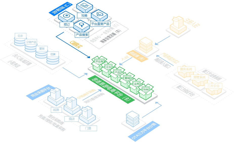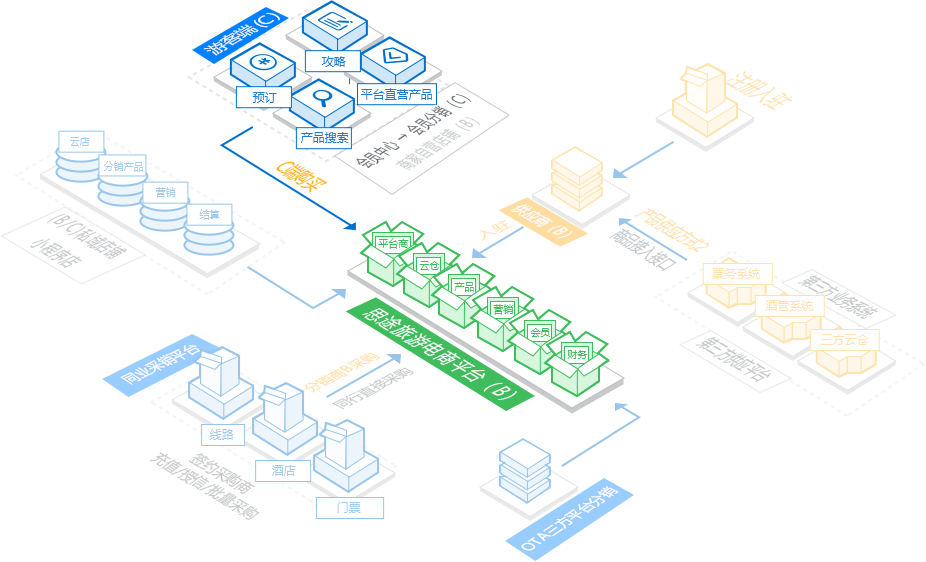 支持業(yè)務(wù)模式:B2C旅游零售電商、B2B旅游同業(yè)分銷、B2B2C旅游供銷平臺