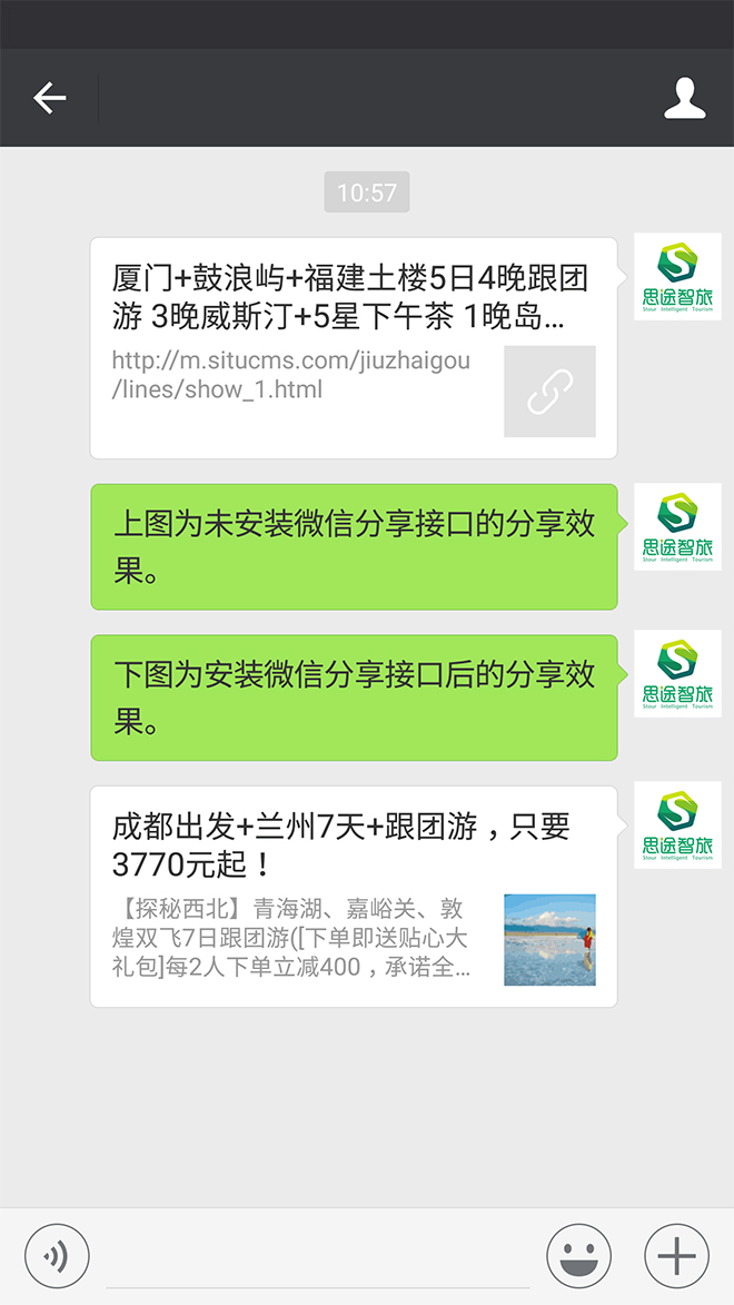 用戶在微信中分享網站或網站產品時,通過調用微信分享接口,對分享鏈接入口指定分享圖片和分享文字描述,解決以往在微信中分享圖片不顯示,及分享描述不顯示的問題。
