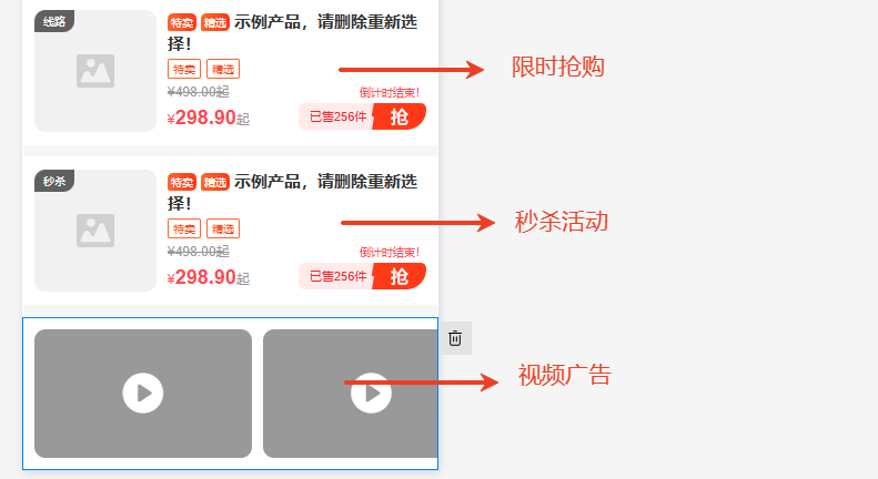 視頻廣告:最多支持添加3個(gè)不大于10M的視頻,可設(shè)置布局方式。