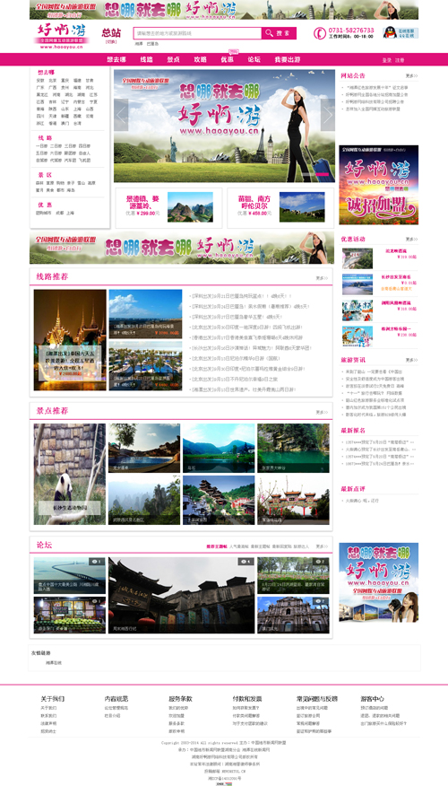 07448旅游網是在思途CMS系統標準模板基礎上進行二次開發之后打造的一個全新旅游網站。網站的首頁的布局主要體現了用戶至上的理念,設置了論壇欄目能充分與用戶互動,一些最新的旅游資訊,產品活動。