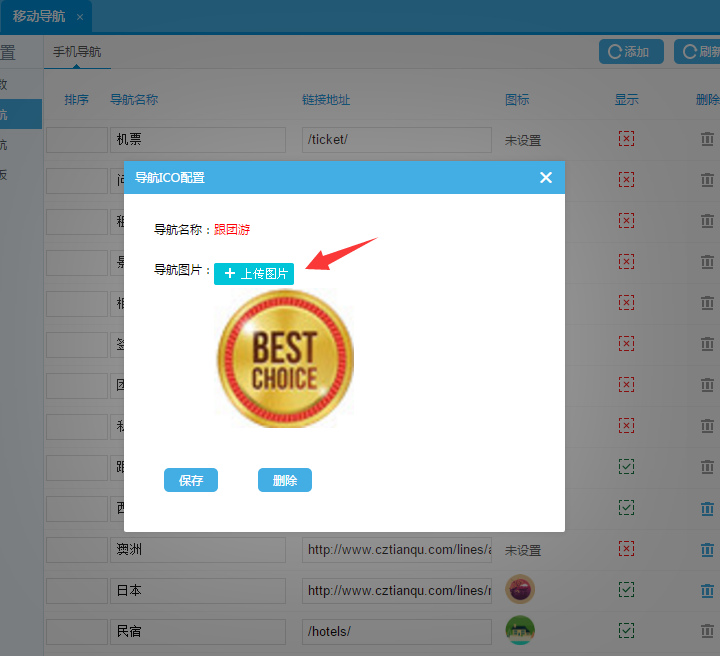 一:手機版主導航后臺設置:移動版設置-移動導航