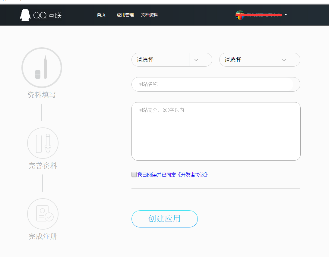 注冊成功后,在QQ互聯(lián)里面登陸自己注冊的賬號(hào),配置互聯(lián)里面的內(nèi)容;