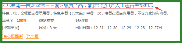 (1)產(chǎn)品標(biāo)題:顯示到產(chǎn)品標(biāo)題位置,產(chǎn)品標(biāo)題的編寫(xiě)建議清晰,準(zhǔn)確,利于游客通過(guò)標(biāo)題直觀比較產(chǎn)品的主要區(qū)別。方便客戶(hù)選擇。