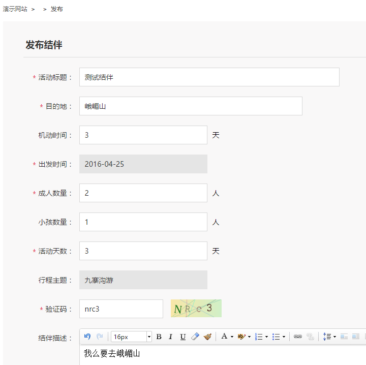 6、點(diǎn)擊發(fā)布后,您的結(jié)伴就完成了?,請登錄后臺查看您的訪客提供的結(jié)伴需求吧
