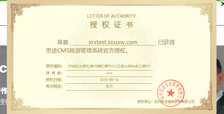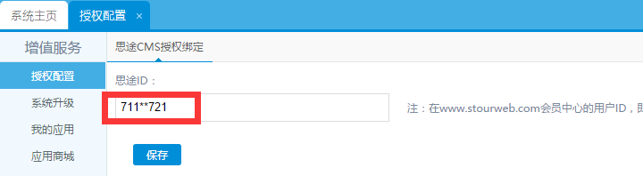 3、是否在cms系統(tǒng)的授權(quán)綁定中填寫了正確的序列號和思途會員帳戶,如圖: