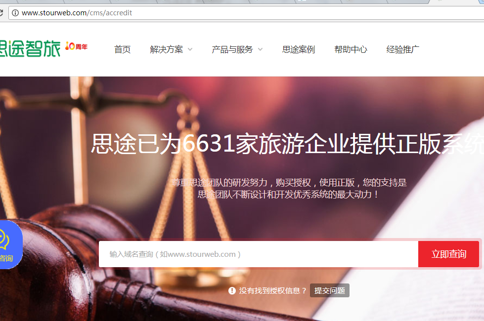 1、域名是否有正確授權(quán),域名授權(quán)是否綁定思途官網(wǎng)等(可在思途官網(wǎng)www.100vida.net 查詢),如圖: