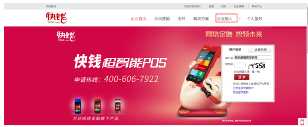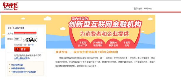 1、登錄快錢官網,點擊右上角登錄按鈕;