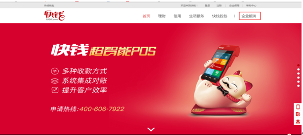 1、登錄快錢官網https://www.99bill.com/,點擊頁面右上方【企業服務】;