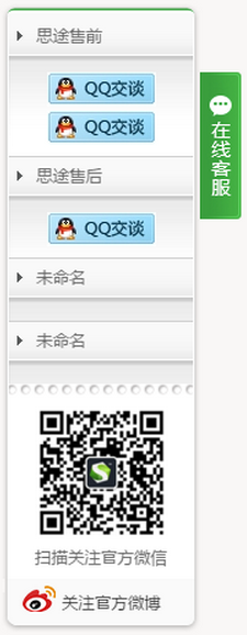 (3)客戶樣式3:支持QQ客服設(shè)置顯示,微信掃碼,點(diǎn)擊進(jìn)入官方微博