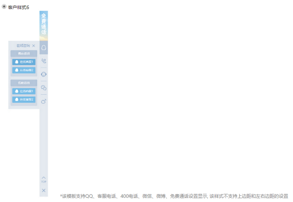 注:在線客服樣式5,在線客服樣式6,在線客服樣式7,在線客服樣式8不支持設(shè)置左右邊距