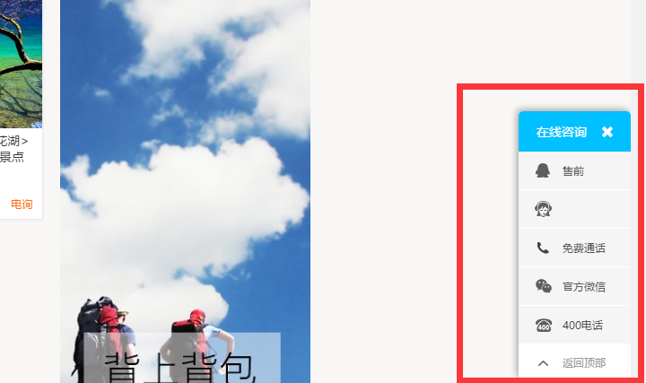 B、所設(shè)置的客服電話在前臺右上角進(jìn)行顯示,詳細(xì)介紹請查看:http://www.100vida.net/help/show/307.html