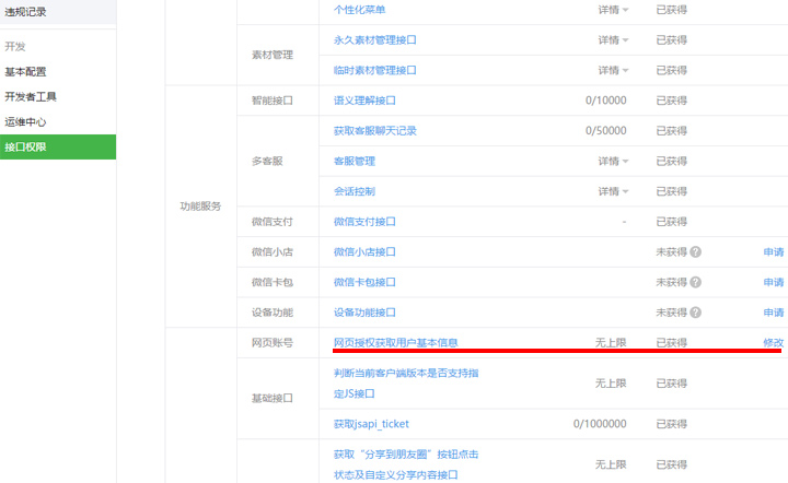 第二步:點擊接口權(quán)限,找到網(wǎng)頁授權(quán)獲取用戶基本信息進(jìn)行設(shè)置!