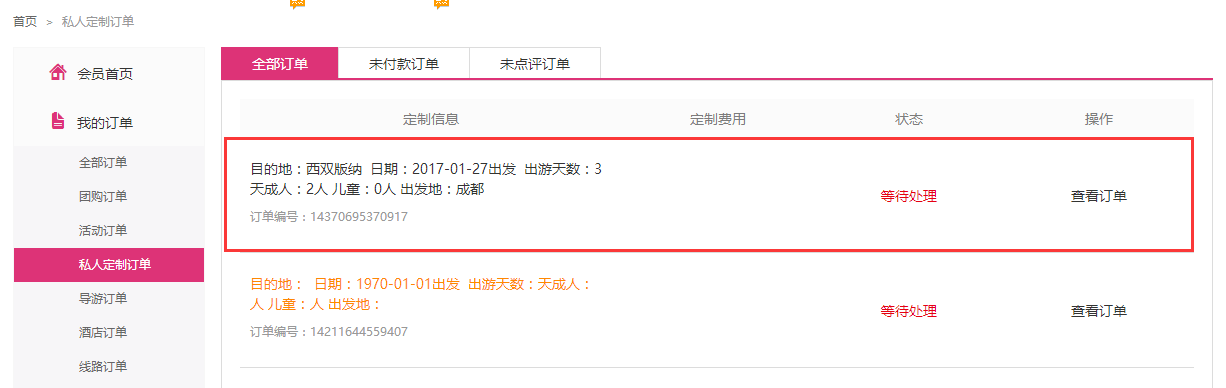 (4)前臺在會員中心查看訂單詳情:可以選擇付款和取消訂單后臺系統配置中勾選了游客信息和發票,則需要填寫信息: