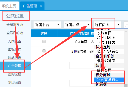3、積分商城頁面的廣告位添加在公共設(shè)置--->廣告管理--->積分商城首頁:添加廣告