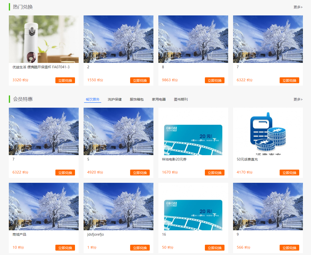 (1)熱門兌換:只顯示4個(gè)產(chǎn)品,支持后臺排序