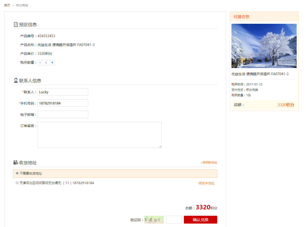 (2)兌換積分:該產(chǎn)品兌換所需要的積分