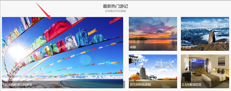 此版塊調用前臺用戶發布的游記信息,屬于和用戶互動性板塊,建議將游記板塊展示到前臺界面上,最簡單的方法是在主導航中開啟,后臺操作路徑:站點管理》電腦端》主導航