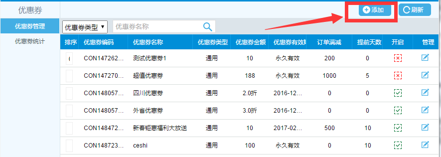 ?內容列表處點擊選擇,勾選需要在這個專題展示的優惠券產品即可