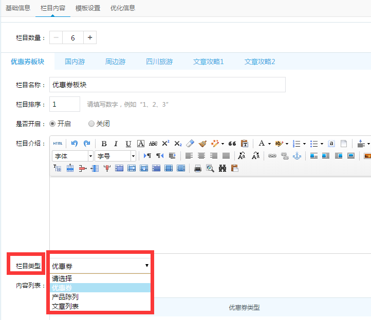 再回到:營銷推廣》專題應用》管理》欄目內容