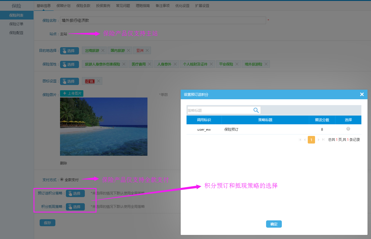 在線路“促銷”里設(shè)置險(xiǎn)種: