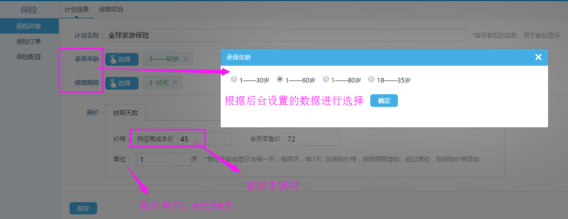 PS:后臺(tái)設(shè)置的承保年齡、保障期限、保險(xiǎn)內(nèi)容未列入篩選列表中