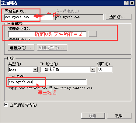 在windows下,IIS中的域名綁字方法: