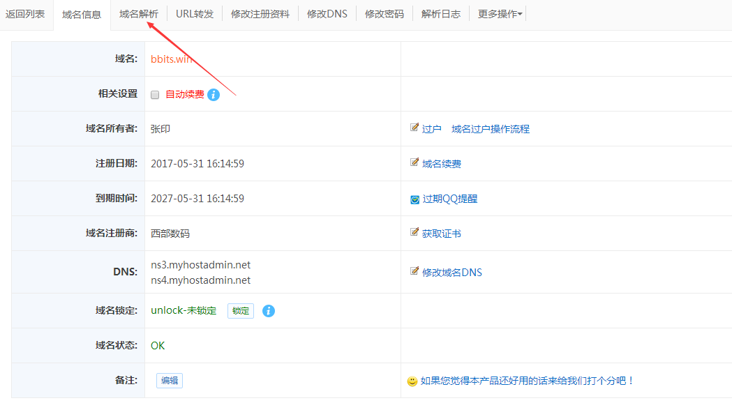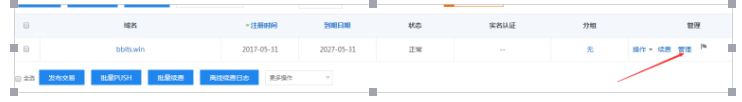 點擊域名后面的管理進(jìn)入到域名解析的頁面