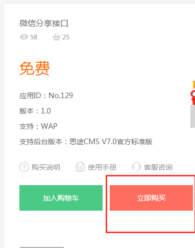 1.1在應用商城購買http://www.100vida.net/app/129.html,微信分享接口應用。