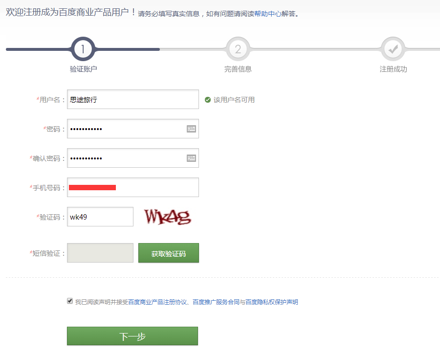 注意:此處的賬號密碼就是剛才我們在百度競價推廣平臺注冊的賬號密碼: