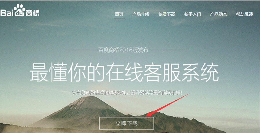 點擊“立即使用”后將自動連接到百度商橋官網http://qiao.baidu.com/home/index.html,請點擊“立即下載”,下載百度商橋客戶端: