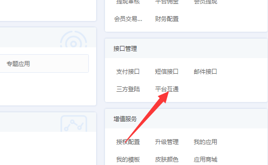 在網(wǎng)站后臺(tái),進(jìn)入平臺(tái)互通: