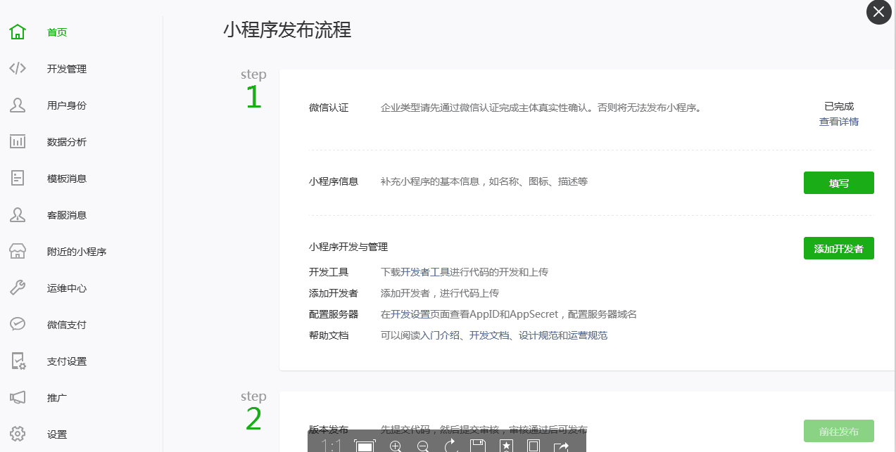 至此,小程序創(chuàng)建認(rèn)證完成,如果是源碼部署,可從以下位置直接上傳源碼發(fā)布。如沒有技術(shù)能力想從思途中轉(zhuǎn)發(fā)布,請(qǐng)查看文章后面“第二步:登錄思途小程序管理中心進(jìn)行綁定和管理”這一步!