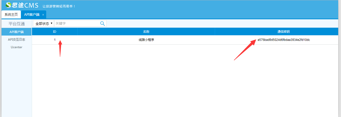 只需要填寫名稱這個(gè)欄目,比如線路小程序,填寫保存之后會(huì)自動(dòng)生成ID和通信密鑰: