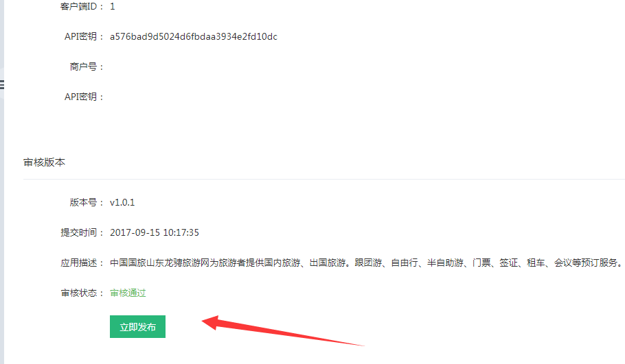 客戶端ID和api密鑰就是第二步將網(wǎng)站后臺(tái)生成: