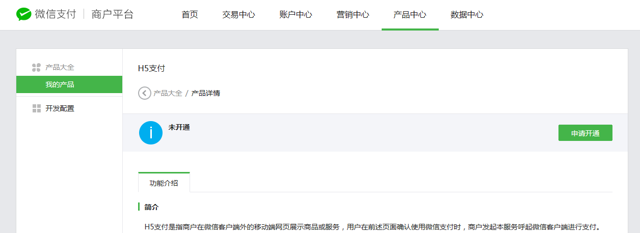 1.4成功安裝證書后,可返回產(chǎn)品中心申請“h5支付”
