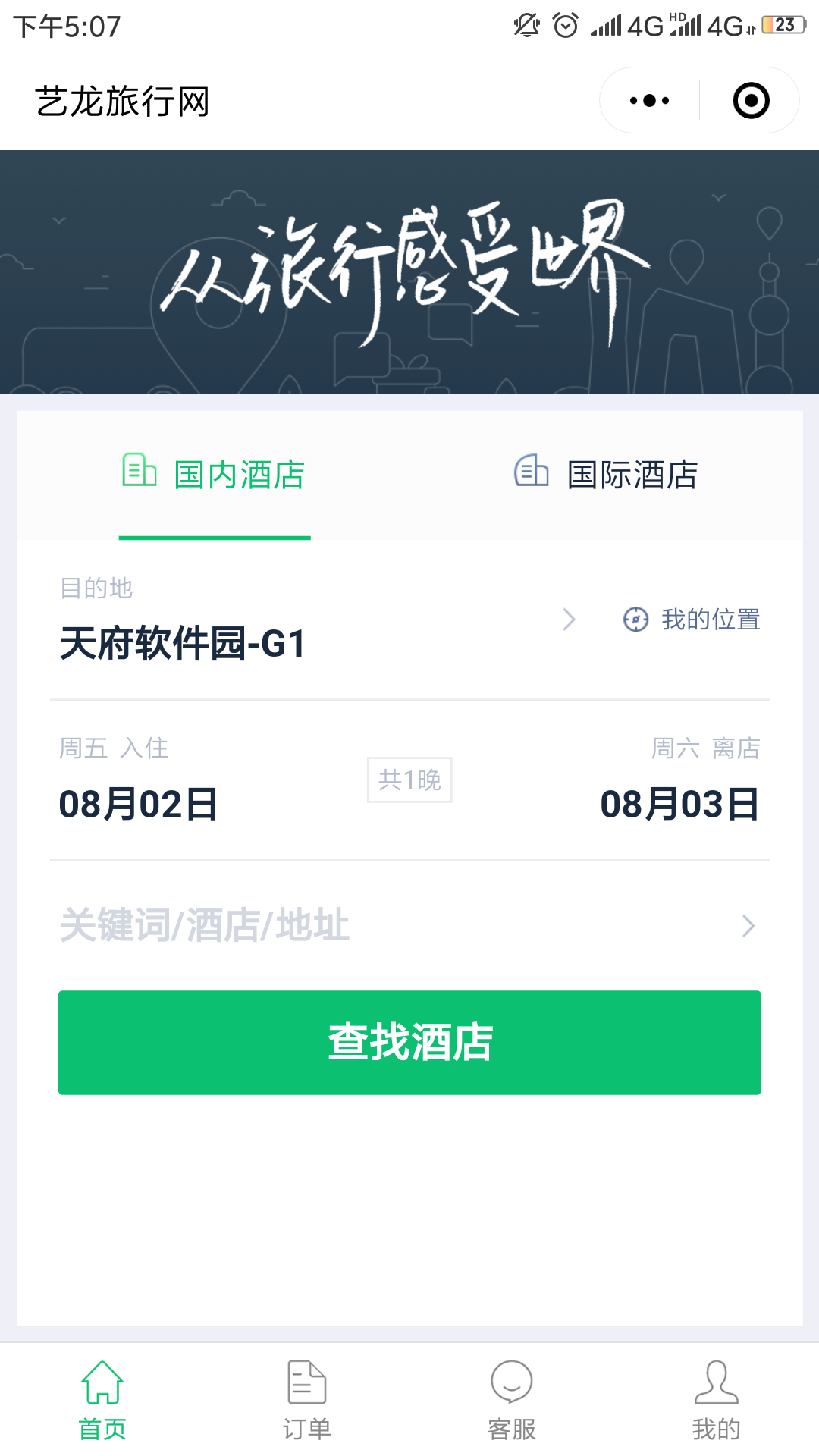 這小程序的模板用banner圖展示出slogan,游客可選擇國內或者國外來預訂酒店。值得一提的是,該模板帶了電話客服功能,解決游客在訂房過程中遇到的問題以及訂單的投訴。可以說,該模板的設計將有效提升游客的滿意度。