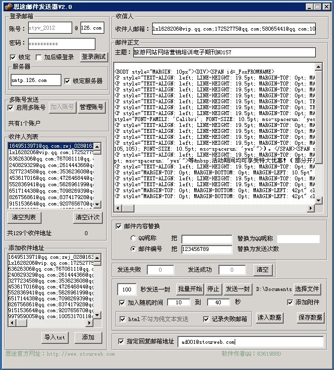 包含單發(fā),群發(fā)、支持郵件附件等常用功能,附贈QQ群QQ號導(dǎo)出工具。工具界面圖如下: