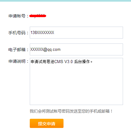 在此頁(yè)面上填寫(xiě)您的申請(qǐng)信息如申請(qǐng)賬號(hào)、電話號(hào)碼、電子郵箱、申請(qǐng)說(shuō)明等。
