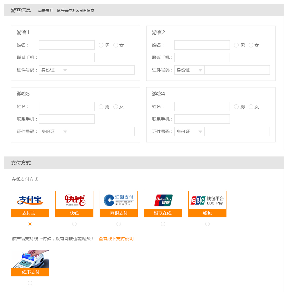 線路訂單增加游客信息填寫功能,方便為客戶提供更準(zhǔn)確的服務(wù)。