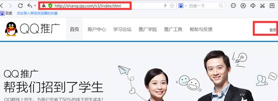 進入QQ推廣官網:http://shang.qq.com/v3/index.html ,并登錄;