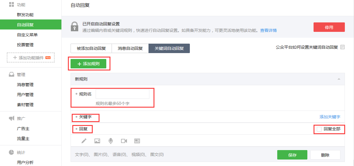 關(guān)鍵字自動回復(fù)的規(guī)則