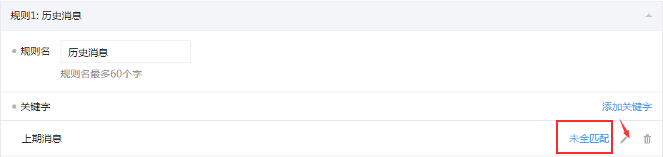 點擊下圖中的筆樣圖標可對關(guān)鍵字名稱進行修改,點擊圖5的“已全匹配”可以切換成“未完全匹配”,再次用手機進行測試。