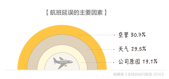 民航局數據顯示,航班延誤最主要因素包括空管、天氣和公司原因,分別占到30.7%、29.5%和19.1%。