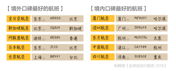 另外,報告數據顯示,國內從西安、蘭州、哈爾濱、濟南和重慶這5個城市的機場出發,準點率最有保障。從國內航空公司來看,幸福航空、江西航空、青島航空、天津航空、華夏航空的準點起飛率更高。而空乘服務、餐食、娛樂設施等因素,也會影響航班的好評率。