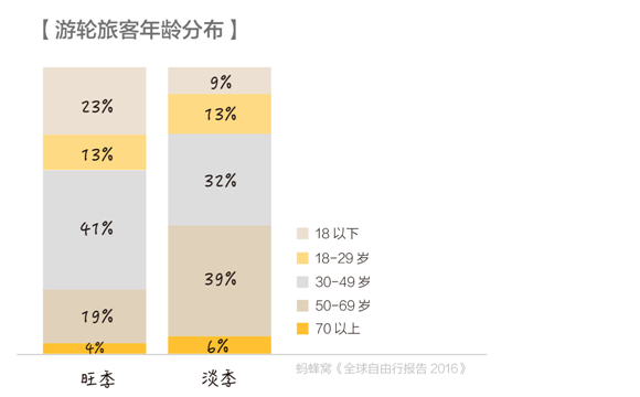 其他值得關注的出行方式還包括游輪。作為一種新興的旅行方式,游輪旅游市場正快速成長。報告數據顯示,選擇游輪的自由行游客平均年齡在45歲左右,女性占比達到60%,同時受到家庭青睞。