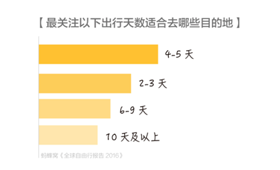 受到假期長度影響,如何在4-5天的前提下,去一個短途目的地度過假期,成為大多數自由行游客最關注的問題。由此也可看出,旅行日益成為利用假期的主要方式。當然,拼假出游仍然是趨勢,上班族更多選擇用年假來充實小長假,盡可能延長旅行長度。