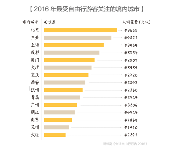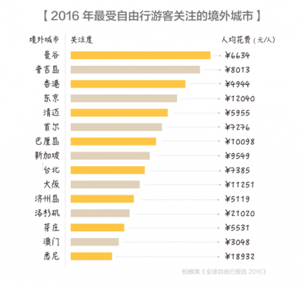 近日,螞蜂窩發布了《全球自由行報告2016》(以下簡稱“報告”),報告以螞蜂窩旅游大數據為基礎,綜合了中國旅游研究院、今日頭條、標準排名、航旅縱橫、皇家加勒比、小豬短租、豆瓣等合作方提供的數據,全面解讀了2016年中國自由行市場和自由行游客行為習慣的變化。