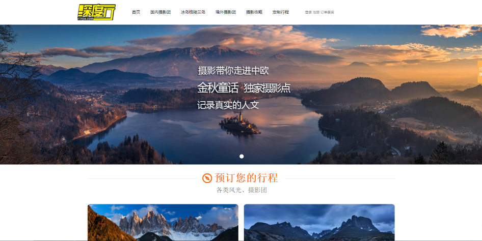 對用戶來說,訪問一個旅游網站,如果第一眼覺得這個網站很好,一般是有兩個方面的原因,第一個原因是網站結構布局良好,第二個原因是首頁Banner圖吸引力強。Banner是網站中最具視覺沖擊力的部分,對于旅游網站來說更是如此。一張清晰美觀的高清Banner圖,直接讓整個網站變得高端起來。如果平常有關注過私人訂制旅游或者個性化旅行網站的站長,就會知道這些網站的Banner圖都非常美觀大氣,給人一種高端上檔次的感覺。如下圖是使用思途CMS搭建的深度行旅游網的首頁Banner: