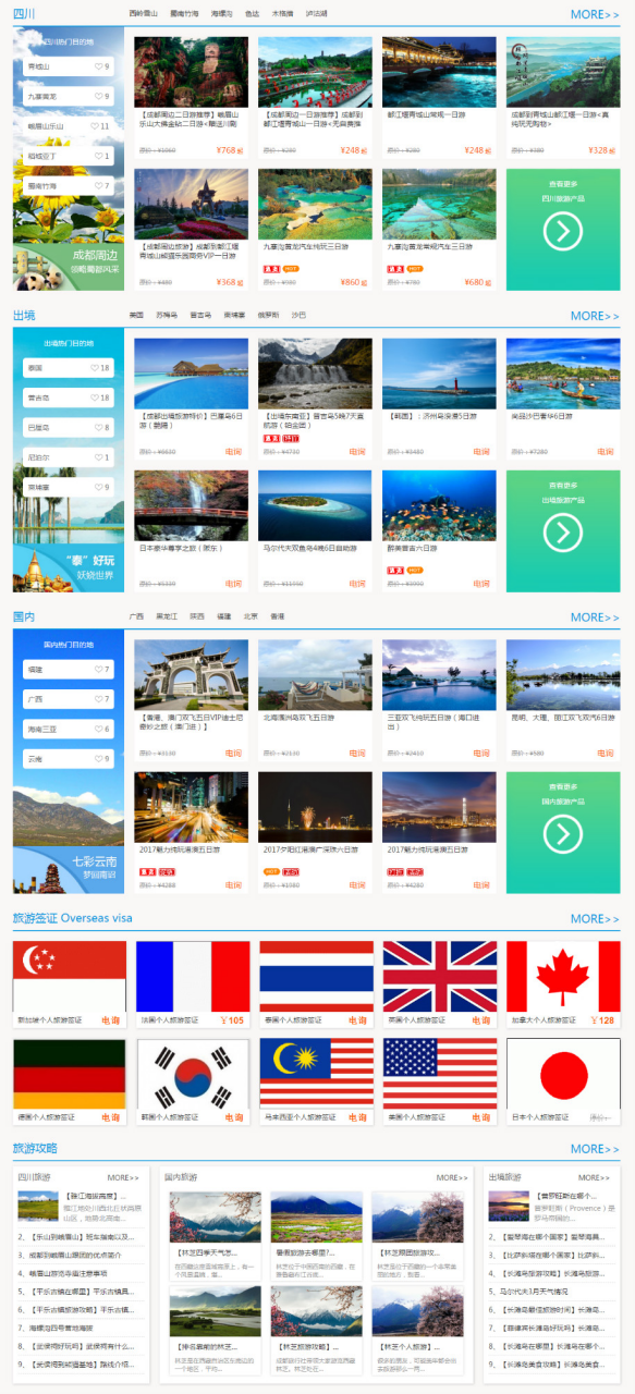 網站的導航從顯示位置來說分為:頂部水平橫欄式,垂直導航欄,側邊固定式,滑出或者彈出窗口導航等。導航欄是用戶最先關注的地方,方便他們進行下一步操作。網站導航能讓用戶快速跳轉到自己想去的頁面,提升網站轉化率。如果網站導航分類不清晰,用戶錯誤的進到自己不感興趣的頁面,那么用戶體驗度就會很不好,最后導致用戶大量流失。還有如果導航欄不完整,很容易給用戶留下網站不專業(yè)的印象,影響整體美觀程度,如下圖是美途網和順風旅游網的左側導航欄對比,好壞自然一目了然: