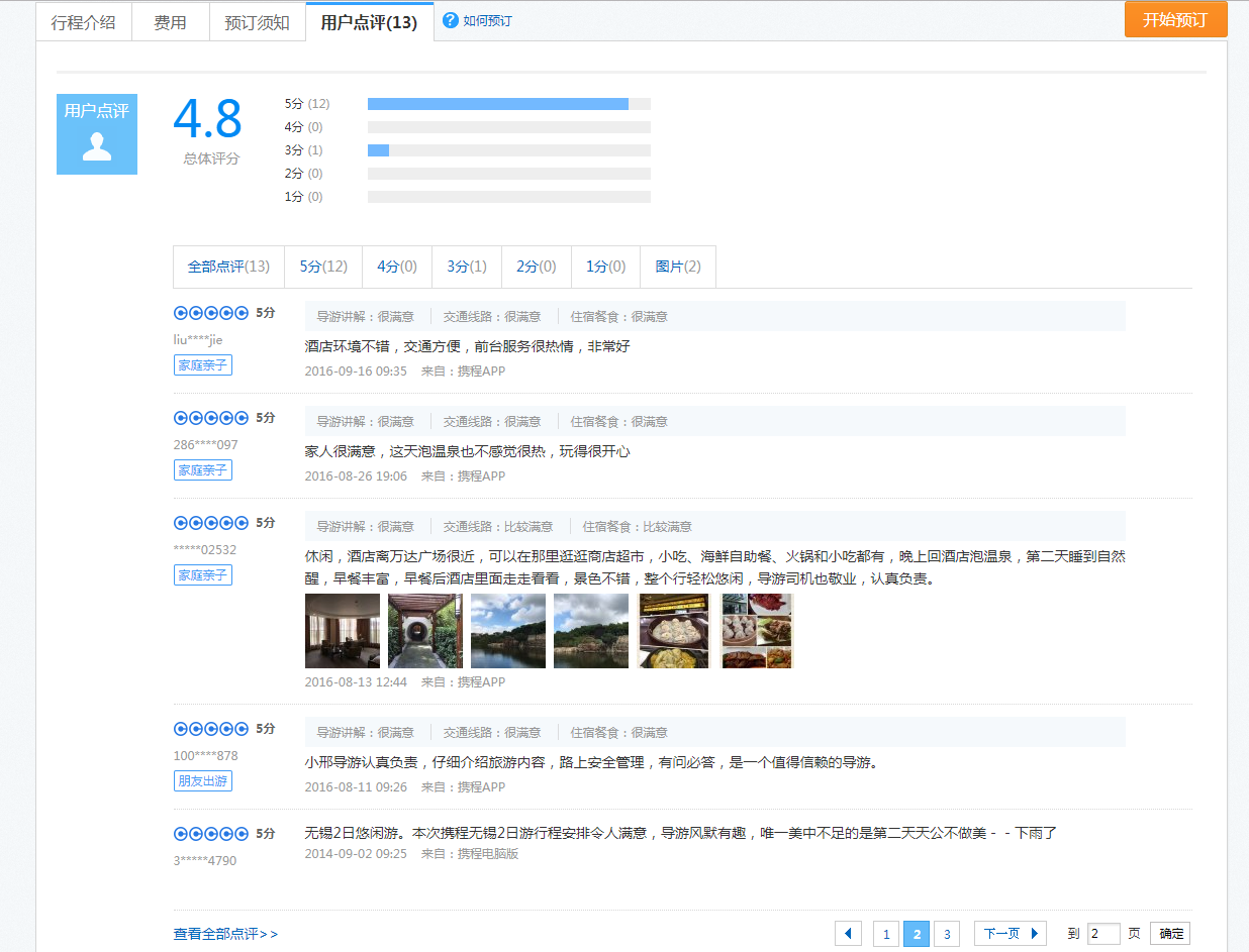 平常大家逛淘寶有這個感受,想買一個東西的時候會專門去看其他買過該產品客戶的評價,若是大多數人都是好評,并配上圖,自己大概也就會買。同理,旅游網站其他用戶的點評是很多正在選擇的用戶都會關注的板塊之一,這些點評意見可能會對他們的最終選擇起到很大的引導作用,增加用戶的信任感,也讓用戶在瀏覽的時候更有參與感。但是很可惜,太多太多的旅游網站都不重視這一塊,客戶點評這個模塊一片空白,不能起到引導客戶的作用。如下圖兩個網站對比,優(yōu)劣一眼就看出來了: